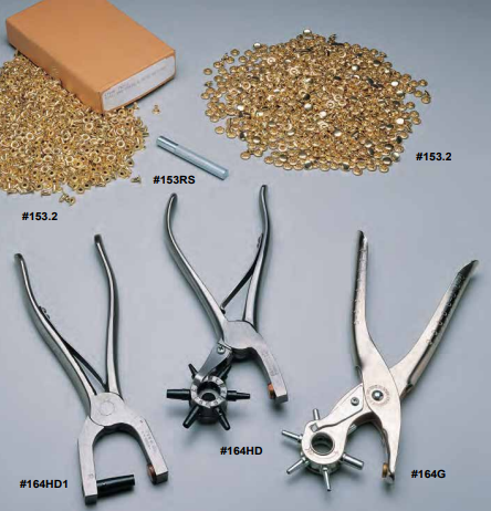 Hand Punches are great for use on Leather, Perma or SunGlo. The #164G is a lightweight rotary punch for occasional use. For the best results, twist so tube blade will slice through material. The #164HD is a heavy-duty rotary punch. Frame is highly polished forged steel. Cutting tubes are hand-turned from special carbon tool steel and threaded for easy re-placement. The #164HD1, a 1-tube punch, is also heavy duty. It has a #8 tube (1/4”) that’s used for installing electronic devices that re-quire a larger hole.