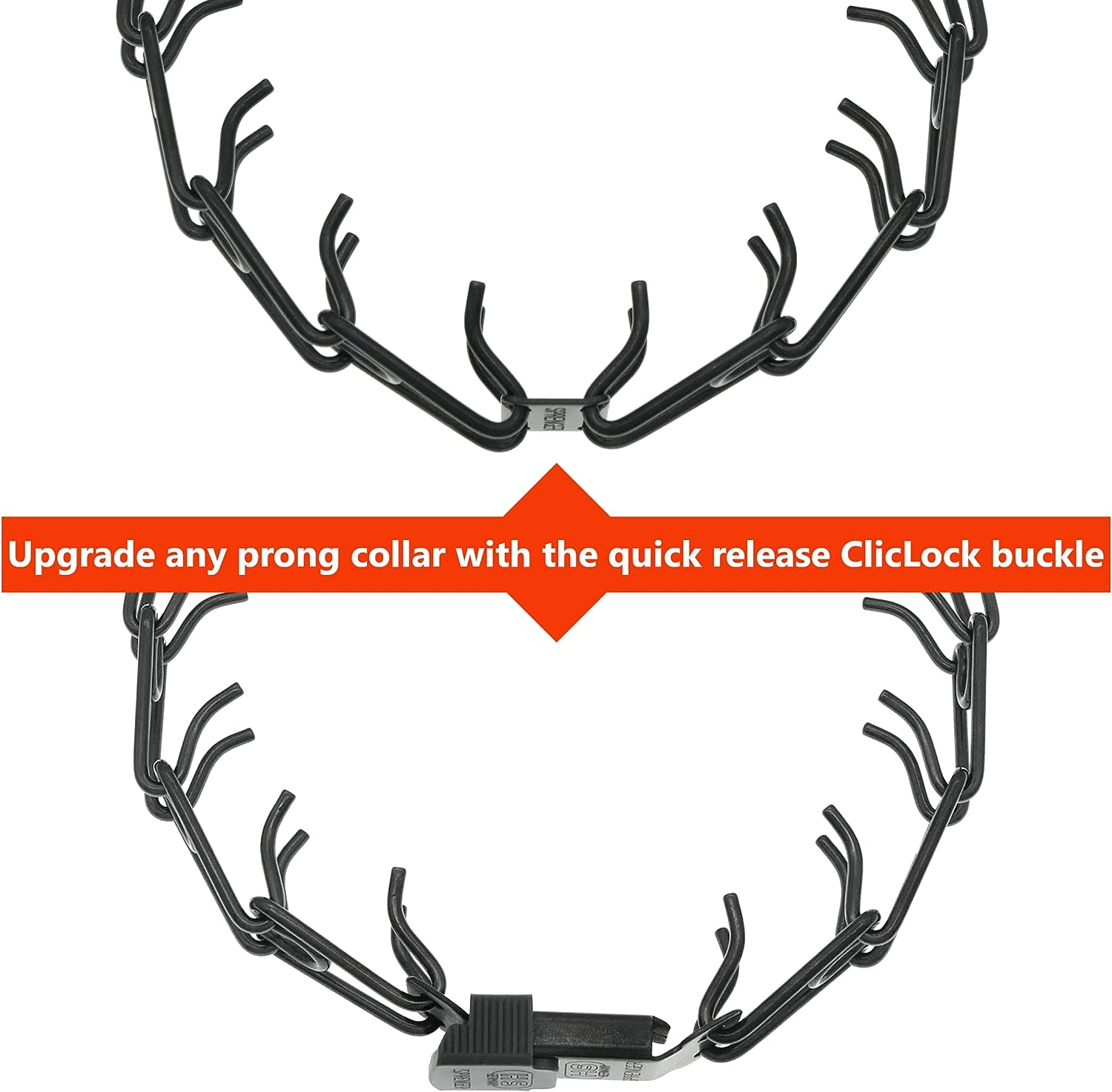 NO MORE FIGHTING TO GET LINKS OPEN EVERY TIME - Turn your prong collar into quick release version. Simply replace center plate with ClicLock buckle.