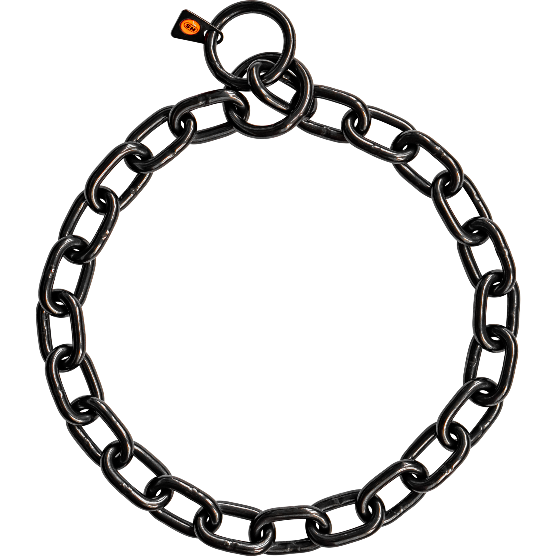 This extra strong chain-style dog collar is perfect for all dog coat types and is gentle on the skin and coat. While this collar is extremely strong, it is not recommended for dogs over 242lbs. The collar can be applied with and without impact.