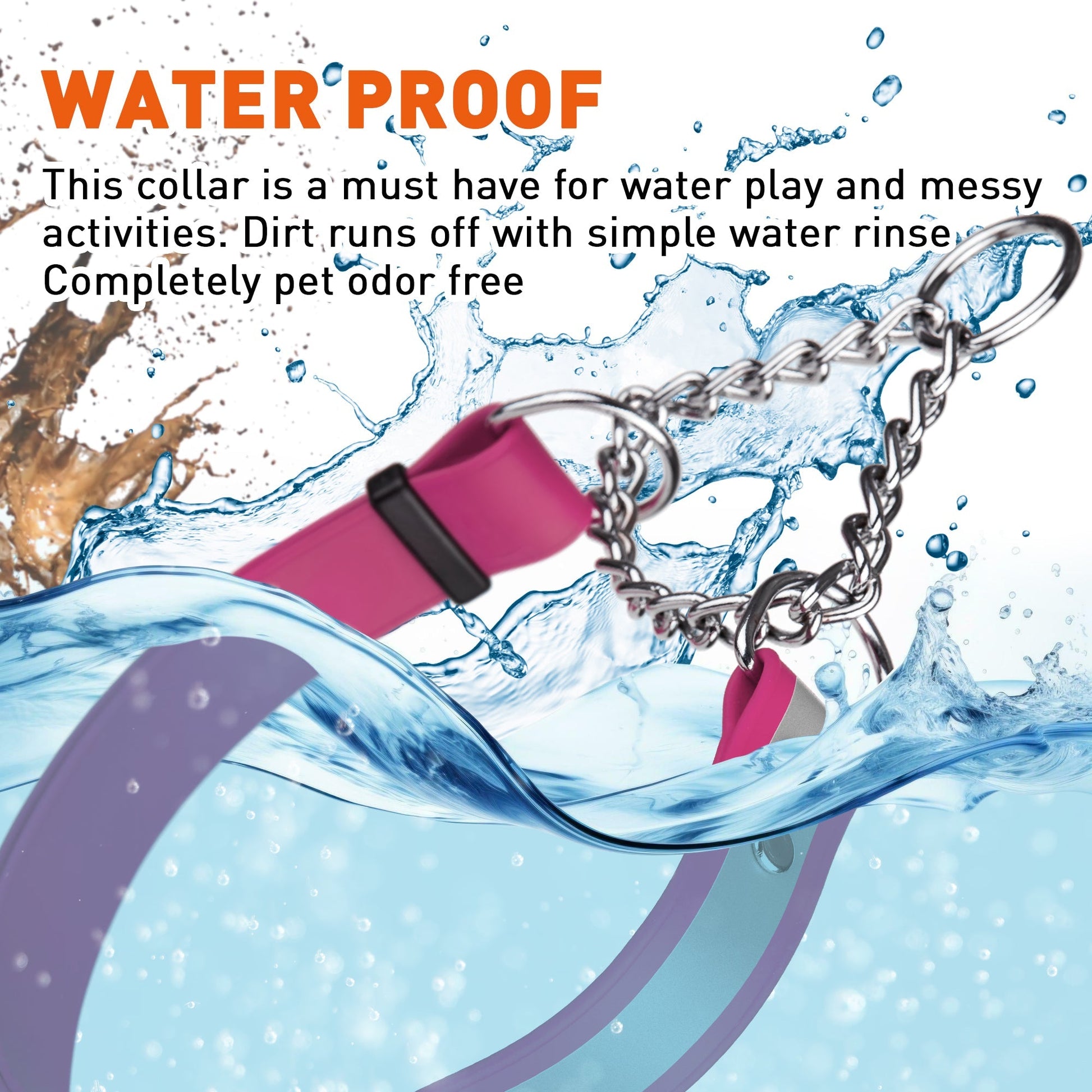 BUILT TO LAST: Our BioThane waterproof collar is designed with a durable polyester webbing covered in a strong waterproof coating that makes the collar extremely durable and resistant. The collar is also hard to deform and features a non-absorbent, odor-resistant surface for easy cleaning.